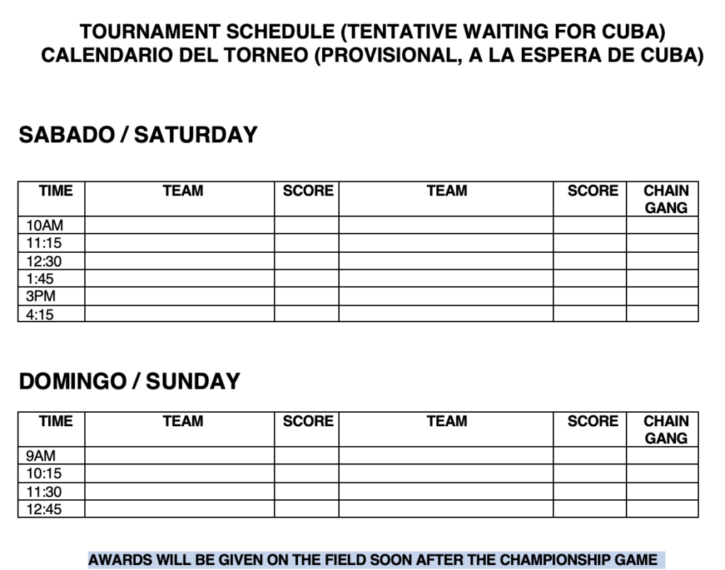 Game Schedule