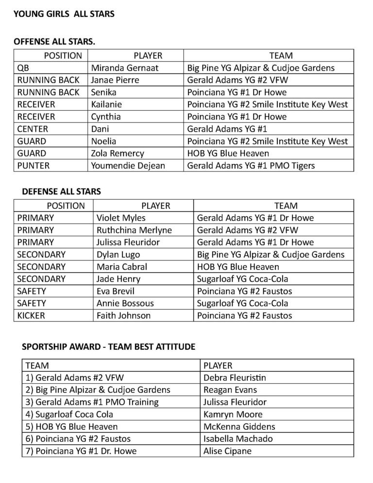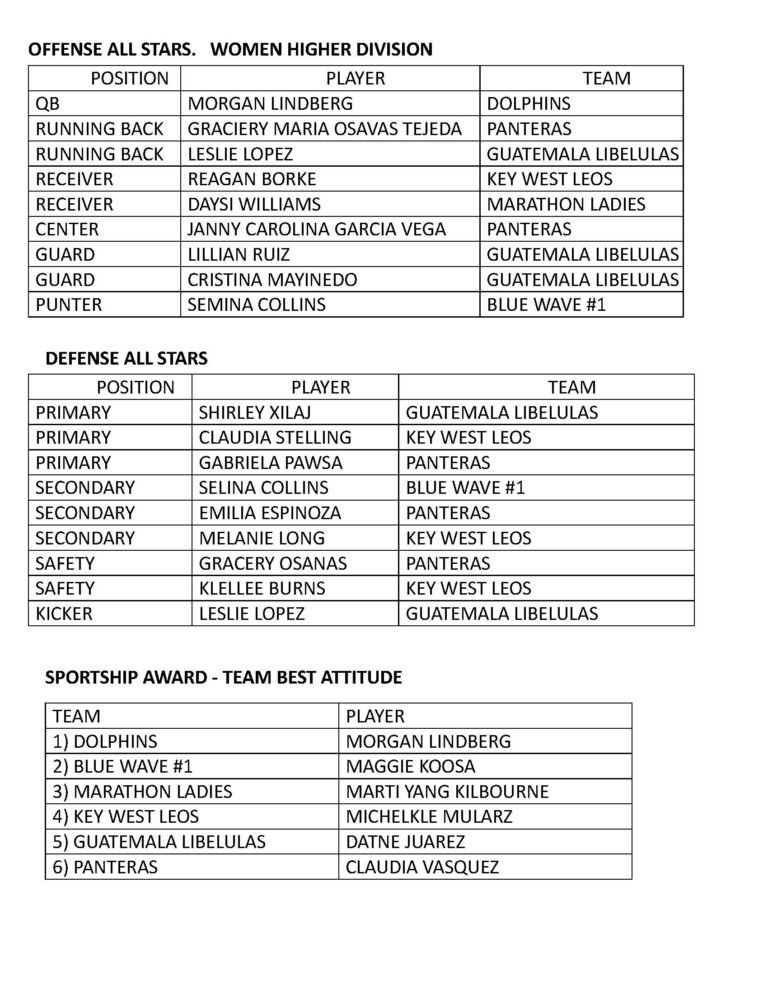 Home Page Tournament Result Event Page ALL STARS & SPORTSHIP AWARDS Women Higher Division Women Lower Division All Stars JUNIOR ALL STARS TO BE DECIDED BY COACHES GIRLS DIVISION ALL STARS YOUNG GIRLS ALL STARS